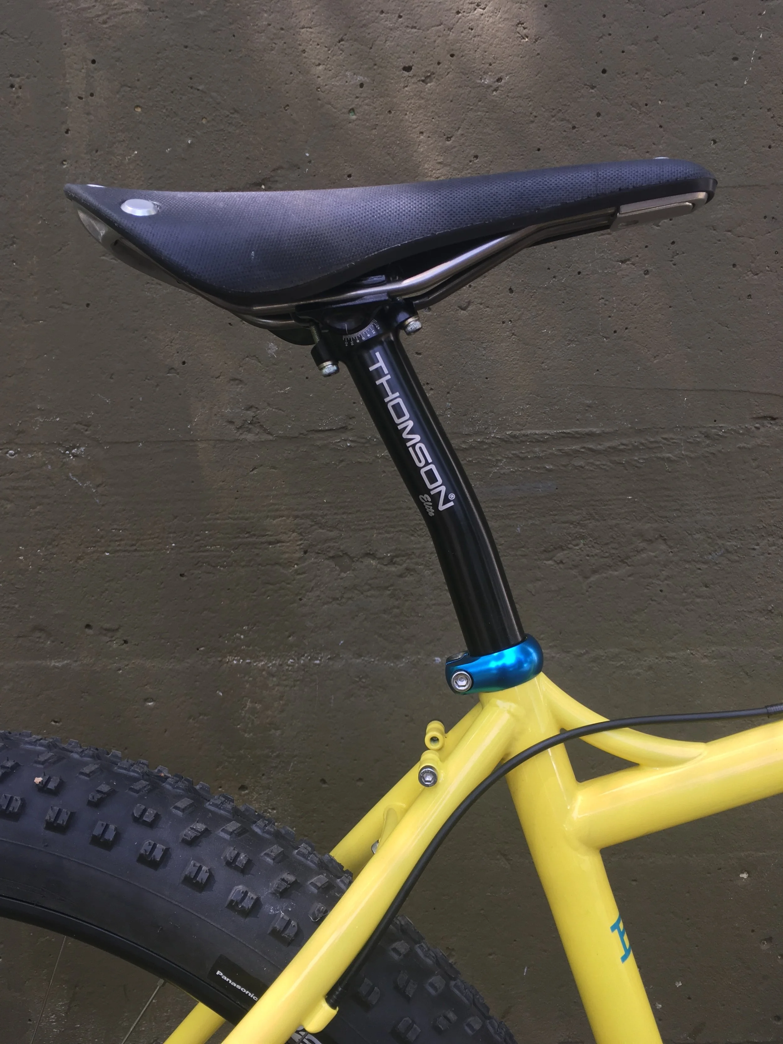 With beautiful lemon meringue paint from Colorworks, custom front rack, 27.5+ plus sized goodness. Reliable parts build with Jones loop bars, White Industries rear hub and SP front hub laced up to Velocity Dually rims, a black Brooks Cambium saddle, good ol' Avid BB7 brakes, Thomson post, and a super dependable Shimano SLX drivetrain. All set for late summer explorations of the PNW.