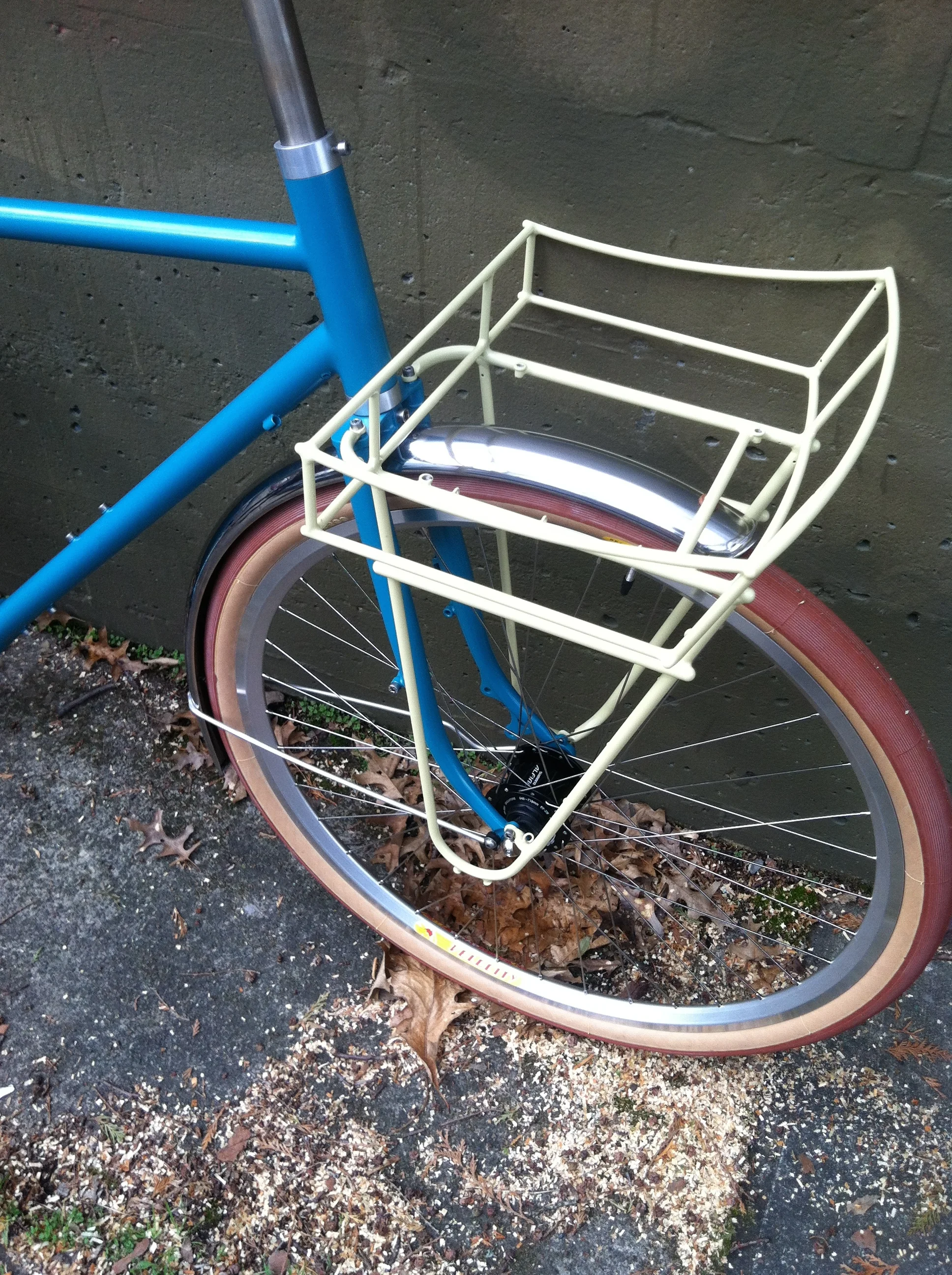 This also gets filed under 'I probably should invest in a better camera'. The colors on the bike in real life are so much more vibrant than they look in these pics. The frame is a beautiful teal offset by the racks in 'Lima Bean' and the Hetre tires in terra cotta. I really really love how it looks. Just wish y'all in InterwebLand could see how nice it looks in reality too. Oh well. Guess you're just gonna have to catch it being ridden around here in PDX if you want to see it in all it's glory.
